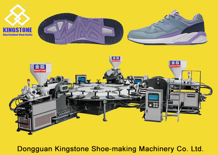 この機械はスポーツの靴、革靴、余暇の靴、スニーカーの靴、等でポリ塩化ビニールのtpr材料が付いている農産物1/2/3つの色のoutsolesのため、使用できるである。
